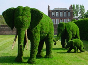 of meer bomen of struiken die (samen) in een bepaalde vorm gesnoeid zijn,