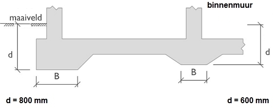 voorbeeld van vorstrand langs perceelgrens voor- en achterzijde woning 800 mm, onder binnenmuren 600 mm; klik voor groter (kivi, aangepast): ![]() |