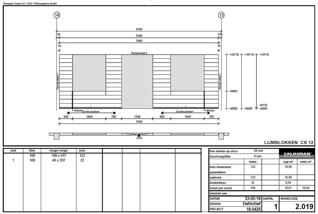 wanduislag of wandplan met calduran lijmblokken; klik voor groter!: ![]() |