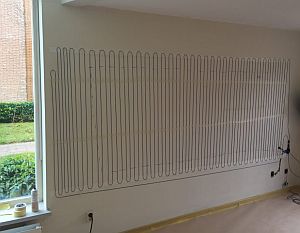 - Een warmtewand kan worden gecombineerd met vloerverwarming.