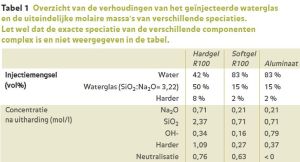 de verhouding water, waterglas en harder bepaalt of het een softgel of een hardgel wordt, een voorbeeld; klik voor groter! (vakblad geotechniek, juni 2019): ![]() |