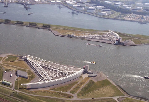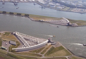 geopende waterkering in de nieuwe waterweg (maeslantkering):![]() |
