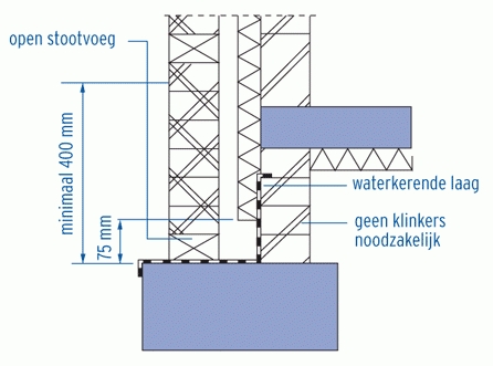 waterkerende laag (zwart-wit-geblokte lijn) tegen vochtdoorslag bij een spouwmuur; klik voor groter (weber beamix):![]() |