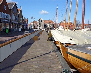 een ander type zelfsluitende nooddijk, self-closing-flood-barrier (scfb), voorbeeld in spakenburg (aggéres): ![]() |
