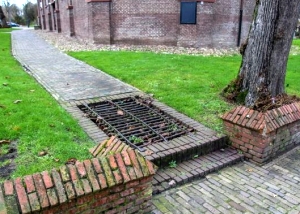 Ook bij een kerkhof werd de grond van de toegang soms door een rooster voorzien,