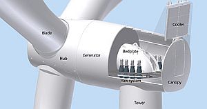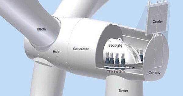 De gondel is de kop van de windmolen (met windturbine en generator).