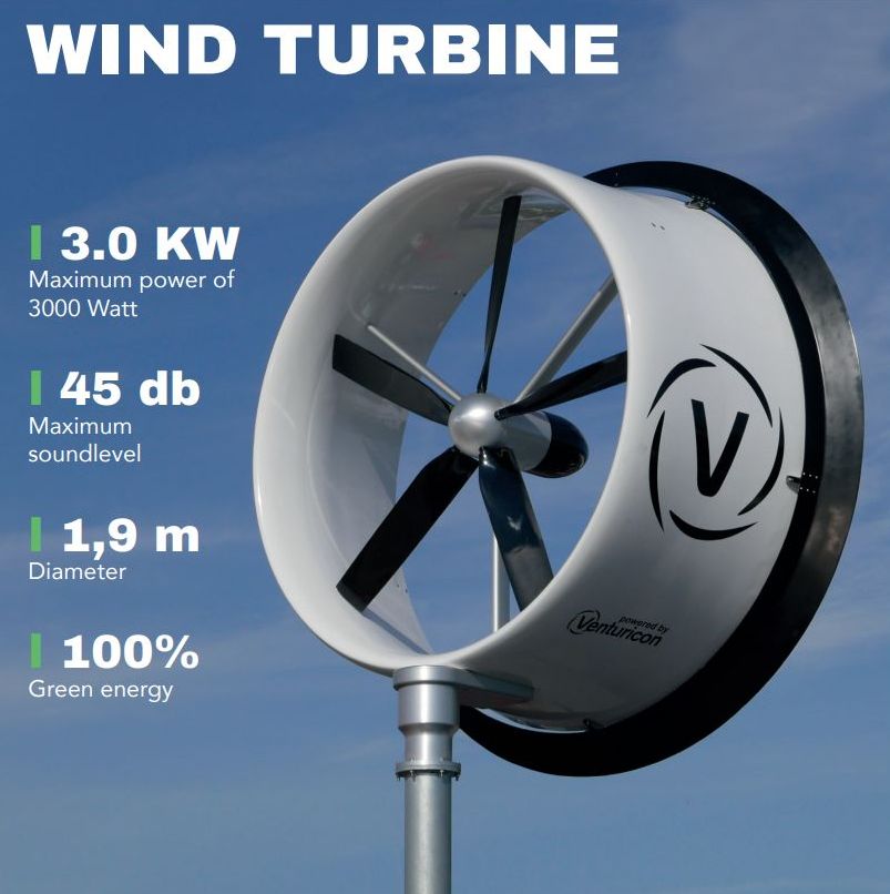Specifieke voordelen van de "omhulde turbine" (windmolen met een horizontale as):