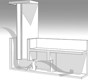 - een extra voordeel van het ondergrondse kanaal is dat zand en stof dat de windtoren binnendringt, wordt opgevangen (bij het ontbreken van het ondergrondse kanaal zou een fijnmazig gaaswerk in de toren zand en stof en dieren tegen kunnen houden, maar het mag de luchtstroom niet teveel belemmeren).