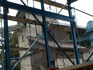 Een extreem voorbeeld om een bestaand gebouw minder gevoelig te maken voor aardbevingen; dit wordt "retrofit" genoemd (bron Leonard G, Wikipedia):