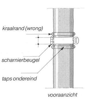 2. De wrong is het profiel in kwartrond of halfrond zoals bij de kraalrand van een (zinken) regenpijp. In combinatie met de scharnierbeugel wordt een wrong (of soms een zogenoemde neus aan de pijp) toegepast om het in de grond zakken van de buis te vermijden.