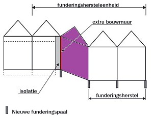 scharnierpand in paars aangegeven, startsituatie bij herstel (uit handboek funderingsherstel op palen en op staal) ![]() |