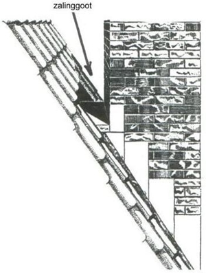 zalinggoot onder afschot voor snelle waterafvoer (boek constructieleer voor de timmerman, 1953, botman): ![]() |