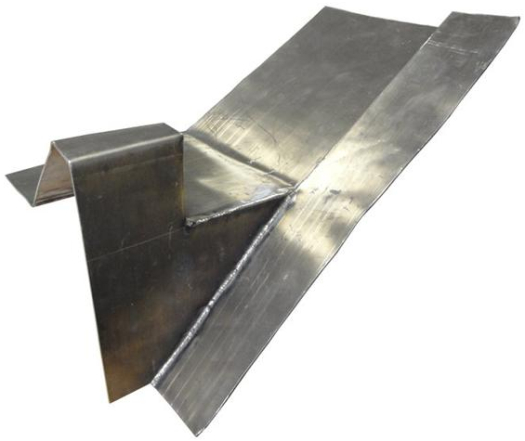 of brede dakdoorbreking bij een hellend vlak. De zaling lijkt op een zakgoot.