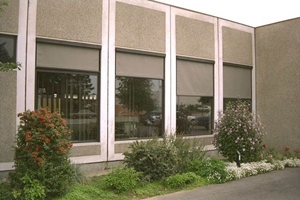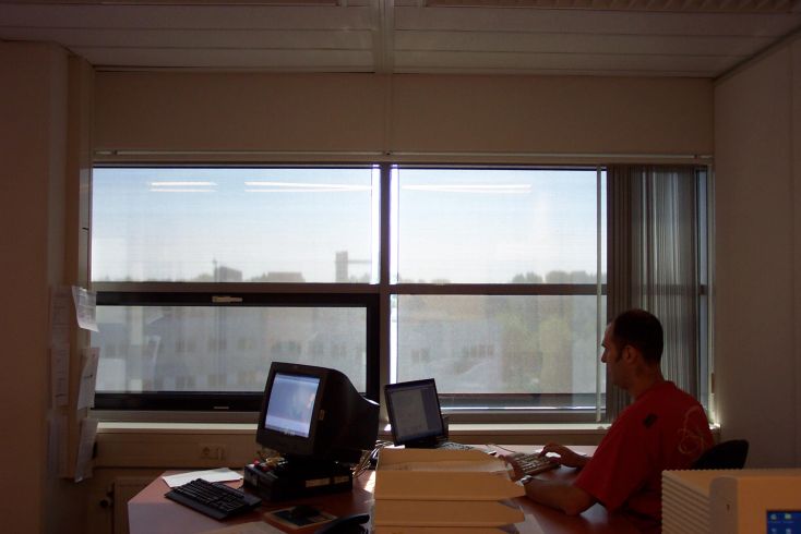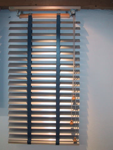zonwering buiten, aan het gebouw: Let op: wanneer de zonwering een groot deel van het licht wegneemt, bijvoorbeeld bij brede verticale lamellen, dan is het vrijwel noodzakelijk dat de lamellen automatisch op de zon gericht worden en automatisch in een neutrale stand komen als er geen zon is. In het laatste geval is er zo min mogelijk hinder van de zonwering, omdat het in het gebouw anders veel te afgesloten en te donker wordt. Voordeel van verticale lamellen is dat die minder stof "vangen" dan horizontale. ![]() |