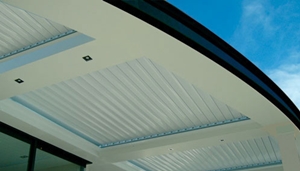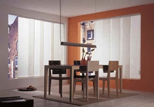 zonwering binnen, facette shade (de ene baan is over de andere te schuiven waardoor volledige afscherming mogelijk wordt): ![]() |