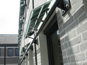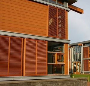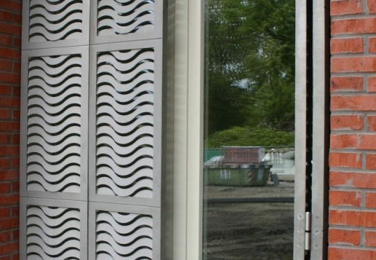 zonwering buiten, als onderdeel van het gebouw (brise-soleil): Let op: wanneer de zonwering een groot deel van het licht wegneemt en de zonwering kan niet variabel ingesteld worden, dan kan het in het gebouw te afgesloten en te donker worden. Wanneer de zonwering variabel is, dan is het vrijwel noodzakelijk dat de zonwering automatisch in een neutrale stand komt als er geen zon is, omdat het in het gebouw anders veel te afgesloten en te donker wordt. |