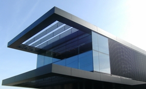 Zonwering tussen binnen- en buitenzijde van het gebouw of op het glas |