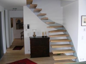 Een zwevende trap is meestal een architectonische blikvanger, maar voor kinderen en ouderen zijn ze niet geschikt omdat er geen houvast is bij het belopen van de traptreden.