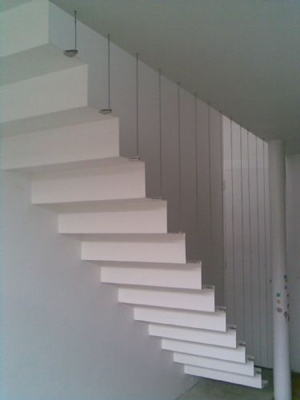 een bijna zwevende trap; verstevigd met stalen kabeltjes (noram): ![]() |