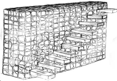 ontwerp van een zwevende trap in een schanskorf: ![]() |
