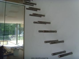 zwevende trap van "paaltjes" in de muur (kristof knockaert timmerbedrijf):![]() |